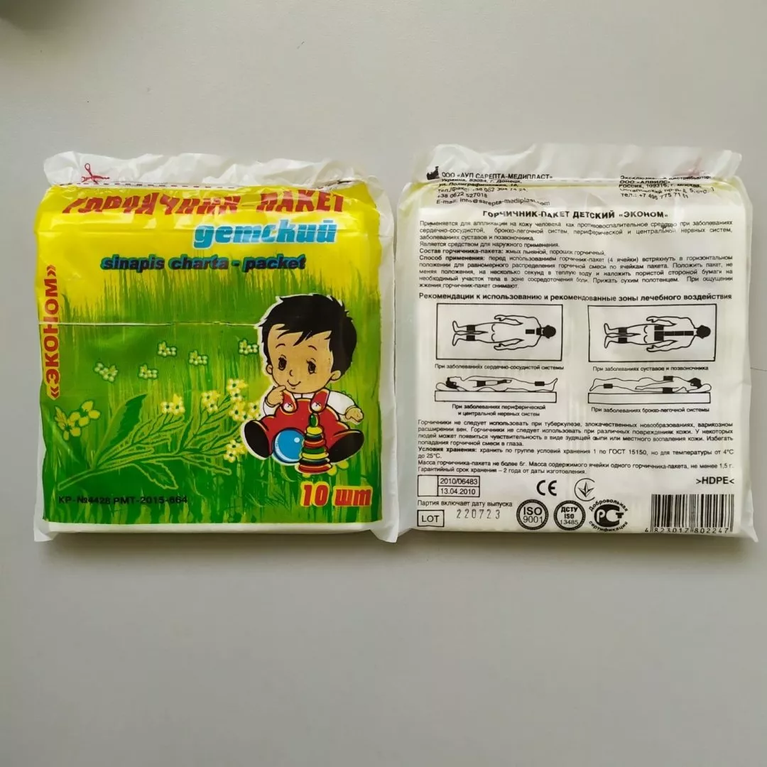 Горчичник-пакет детский "Эконом" 10 штук, транспортная упаковка 200\100 штук.