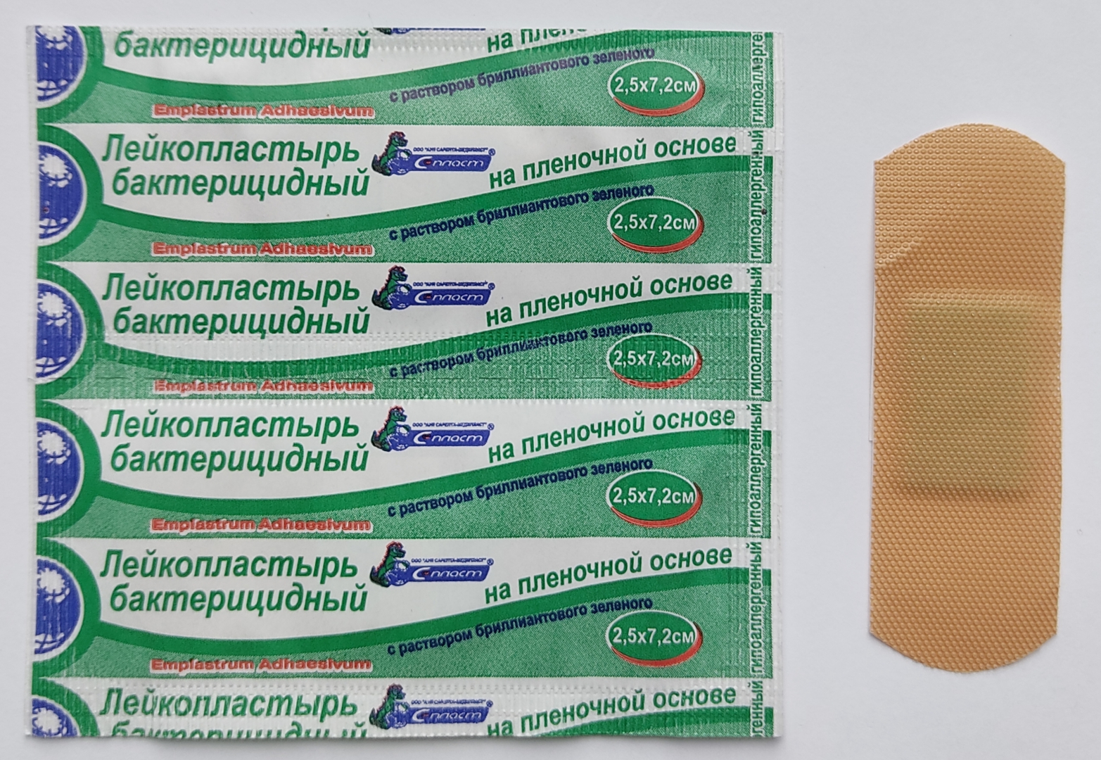 Лейкопластырь бактерицидный на пленочной основе 2,5х7,2 см, №1