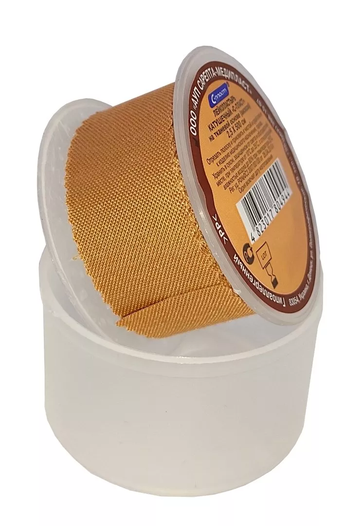 - Лейкопластырь катушечный "С-ПЛАСТ" на тканевой основе (ацетат) 2,5x500 см телесный, С-Пласт (пластиковая втулка, пластиковый футляр)