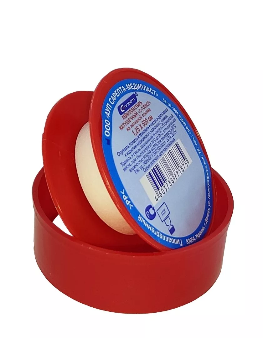 - Лейкопластырь катушечный "С-ПЛАСТ" на тканевой основе (ацетат) 1,25 х500 см телесный, С-Пласт (пластиковая втулка, пластиковый футляр)