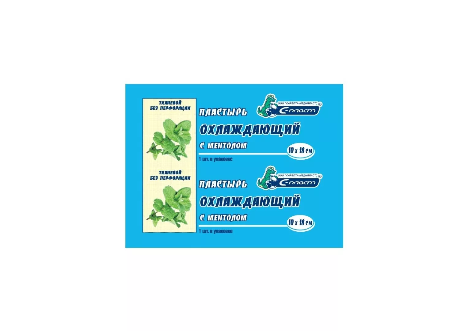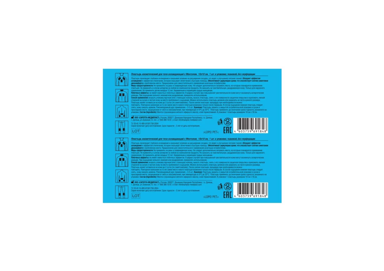 Пластырь косметический для тела охлаждающий с Ментолом, 10х18 см, без перфорации.