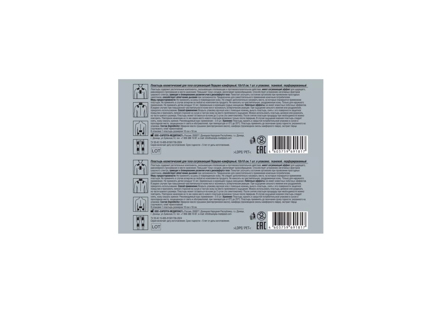 4. Пластырь косметический для тела согревающий Перцово-камфорный, 10х18 см, перфорированный.