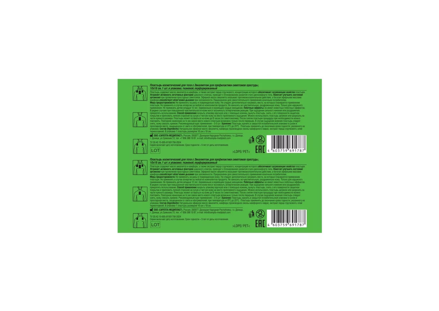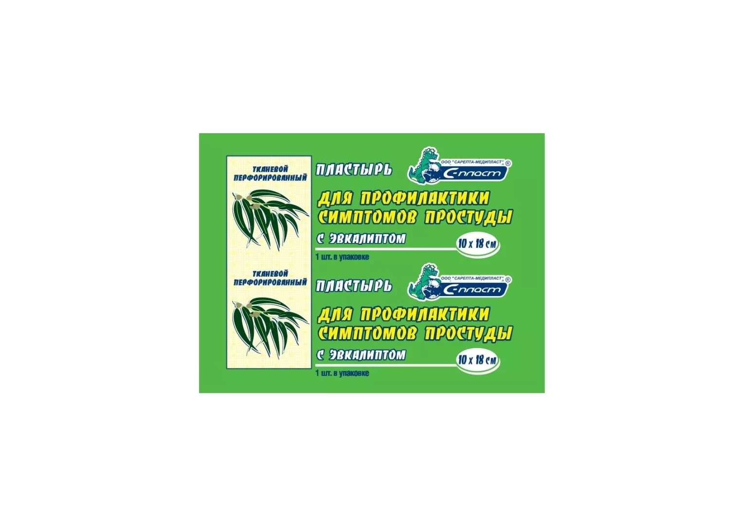 Пластырь косметический для тела с Эвкалиптом для профилактики симптомов простуды, 10х18 см, перфорированный.